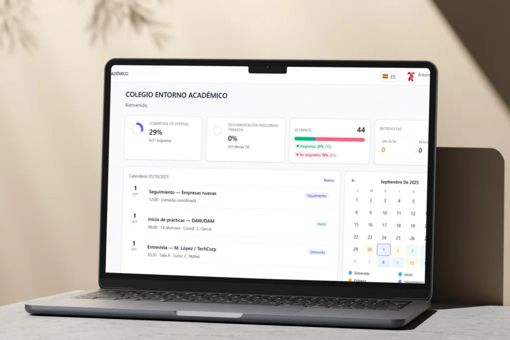 El software de gestión de prácticas FP que centraliza empresas, ofertas, entrevistas, documentación y seguimiento en un único entorno. Para que la gestión de prácticas en empresa no dependa de Excel, correos y mil carpetas.